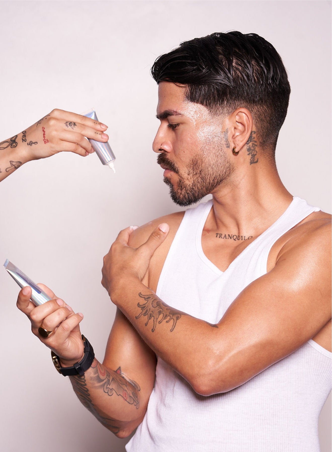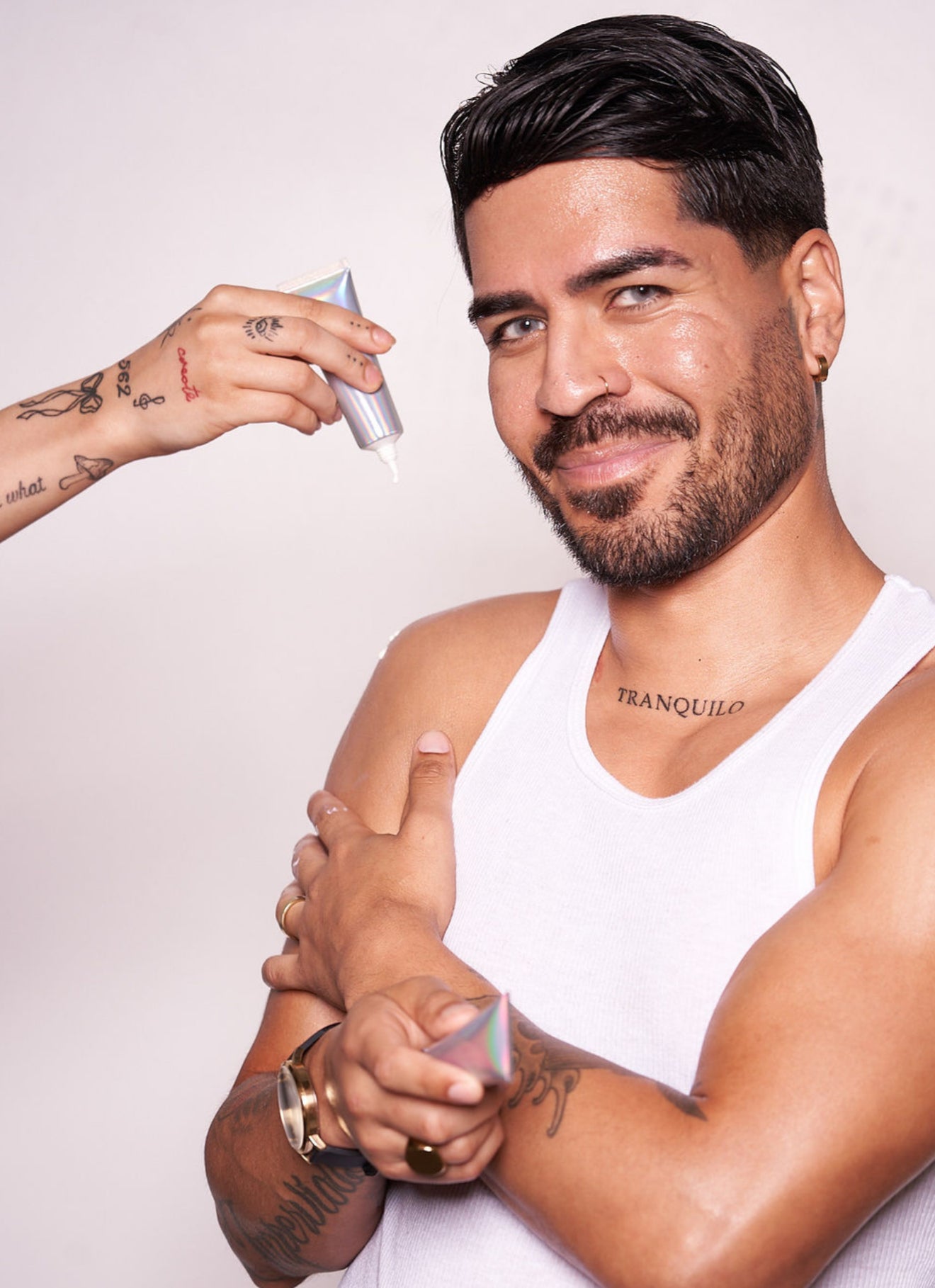 Its non-whitening, fast absorbing texture creates a smooth base for makeup application.